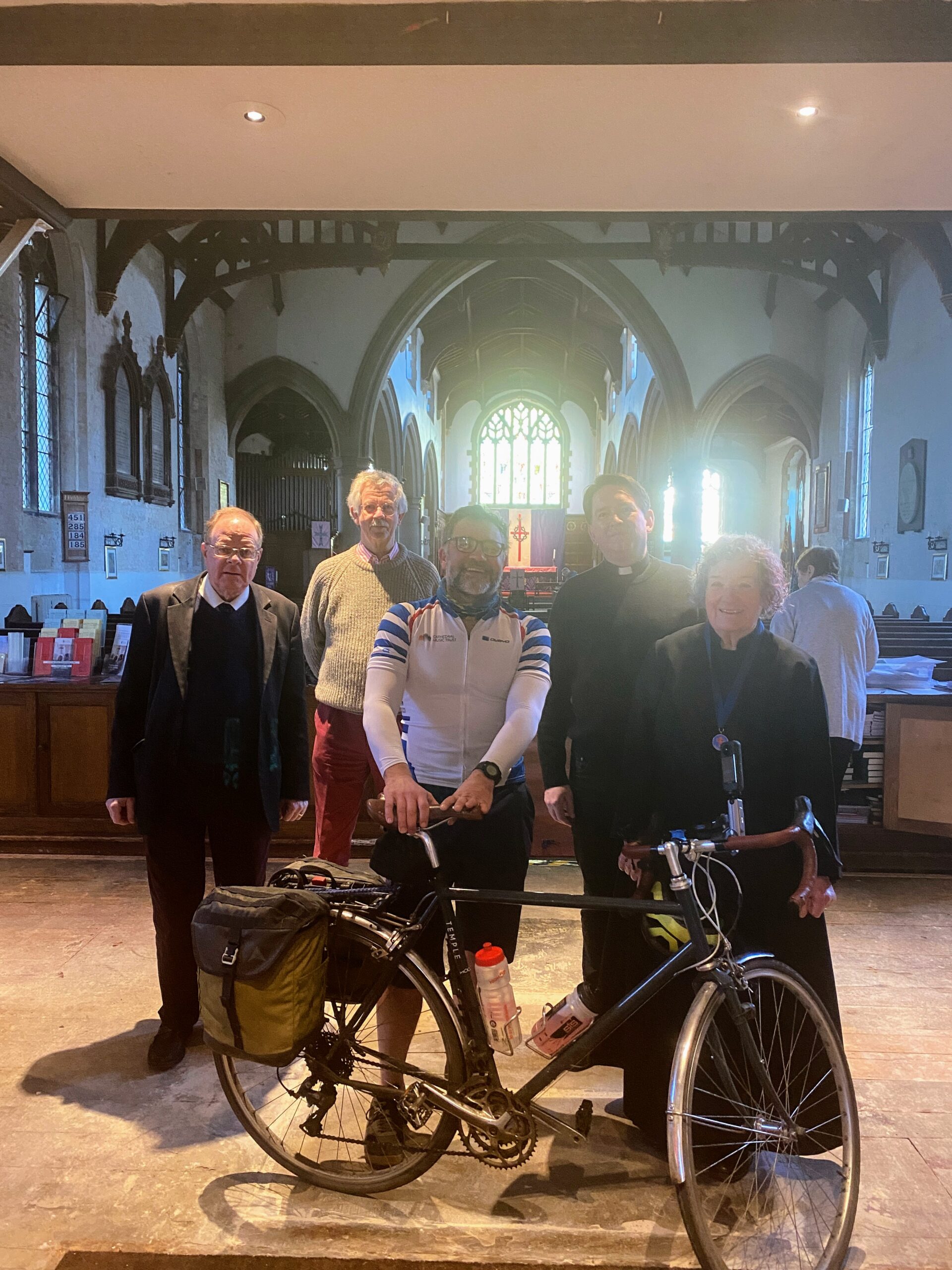 Johnathan Mayes, CEO of the Cathedral Music Trust (CMT), is making a cycing pilgrimage around cathedrals and churches (like ours) with a strong musical tradition. He visted Ss Peter & Paul at 07:45 on Sunday